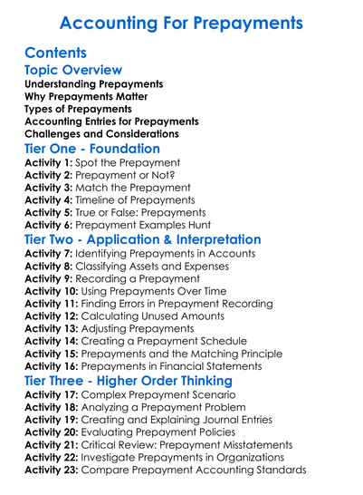 Accounting For Prepayments Worksheet Activity Booklet