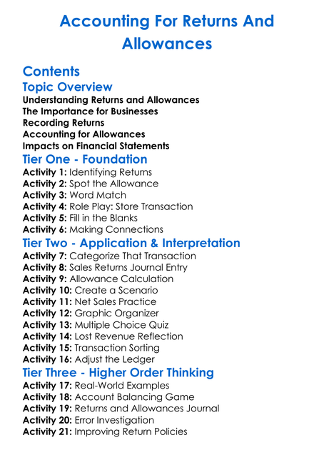 Accounting For Returns And Allowances Worksheet Activity Booklet