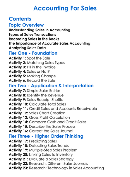 Accounting For Sales Worksheet Activity Booklet