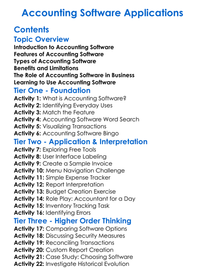 Accounting Software Applications Worksheet Activity Booklet