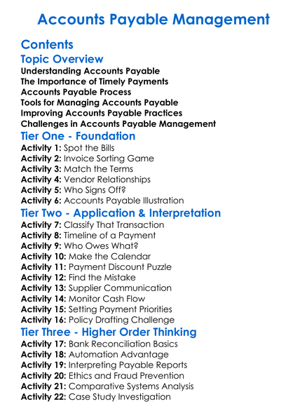 Accounts Payable Management Worksheet Activity Booklet