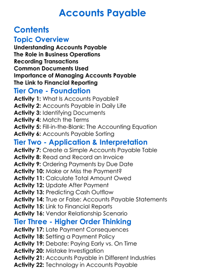 Accounts Payable Worksheet Activity Booklet