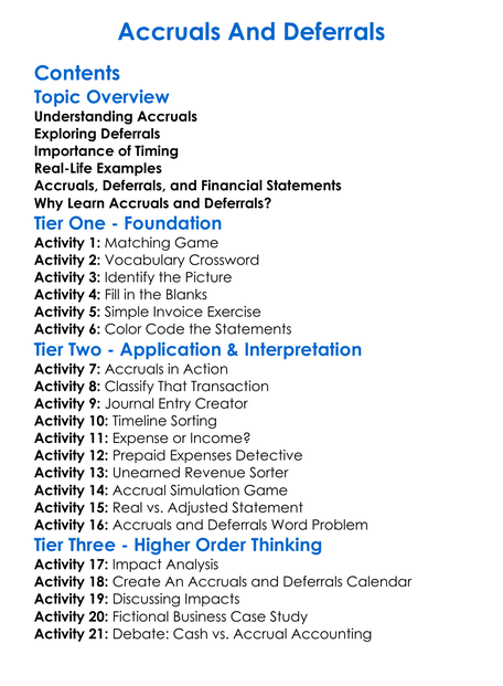 Accruals And Deferrals Worksheet Activity Booklet