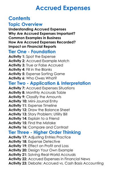 Accrued Expenses Worksheet Activity Booklet