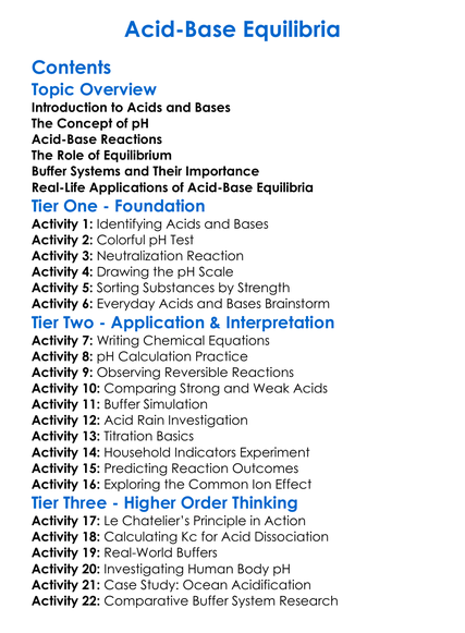 Acid-Base Equilibria Worksheet Activity Booklet