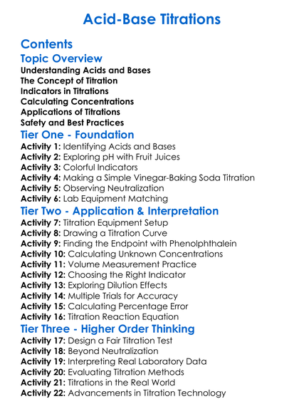 Acid-Base Titrations Worksheet Activity Booklet