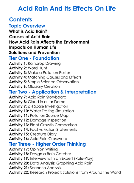 Acid Rain And Its Effects On Life Worksheet Activity Booklet