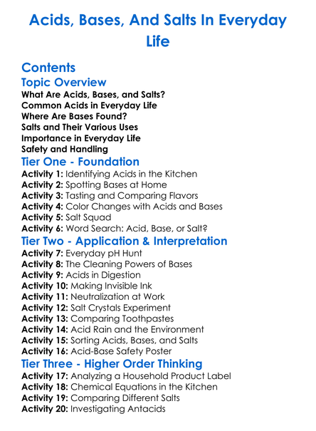 Acids Bases And Salts In Everyday Life Worksheet Activity Booklet