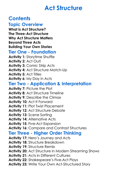 Act Structure Worksheet Activity Booklet