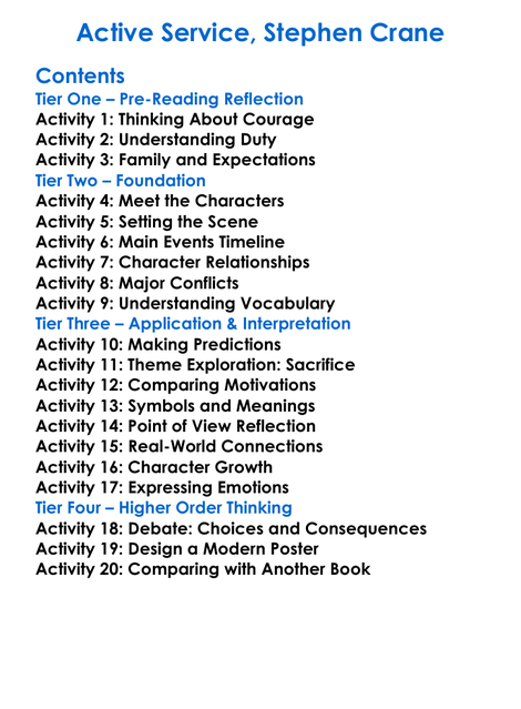 Active Service Stephen Crane Worksheet Activity Booklet