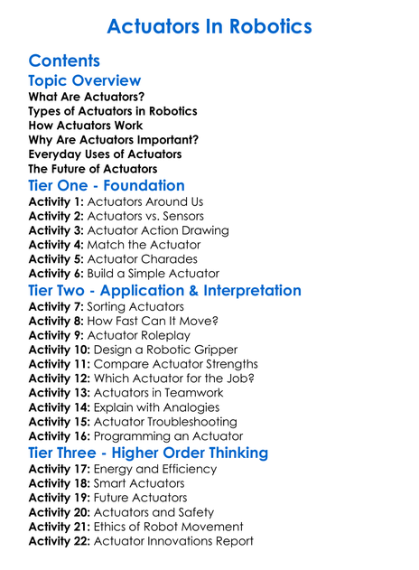 Actuators In Robotics Worksheet Activity Booklet