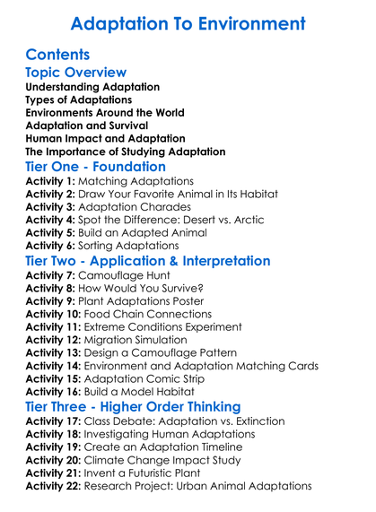 Adaptation To Environment Worksheet Activity Booklet
