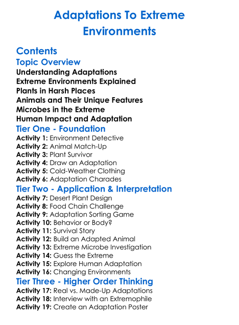Adaptations To Extreme Environments Worksheet Activity Booklet