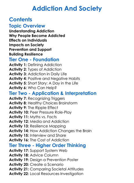 Addiction And Society Worksheet Activity Booklet