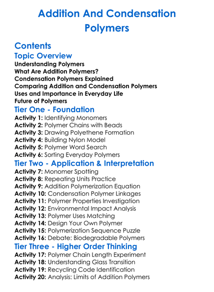 Addition And Condensation Polymers Worksheet Activity Booklet