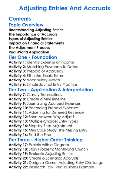 Adjusting Entries And Accruals Worksheet Activity Booklet