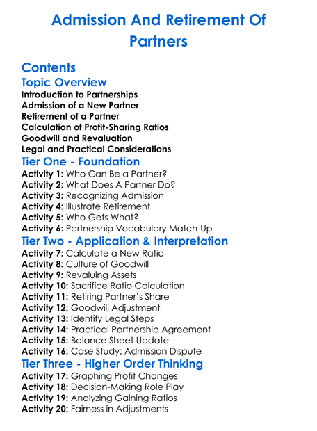 Admission And Retirement Of Partners Worksheet Activity Booklet