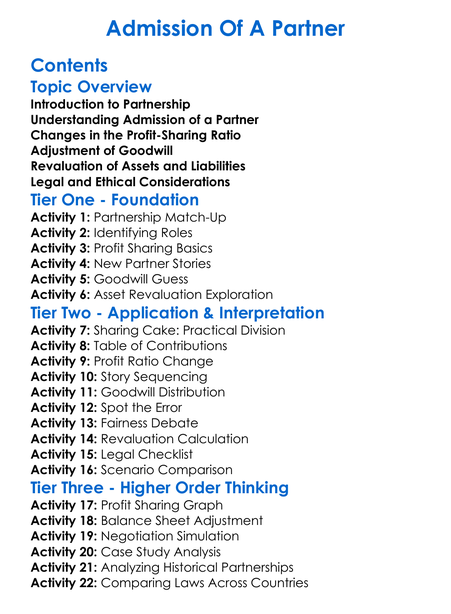 Admission Of A Partner Worksheet Activity Booklet