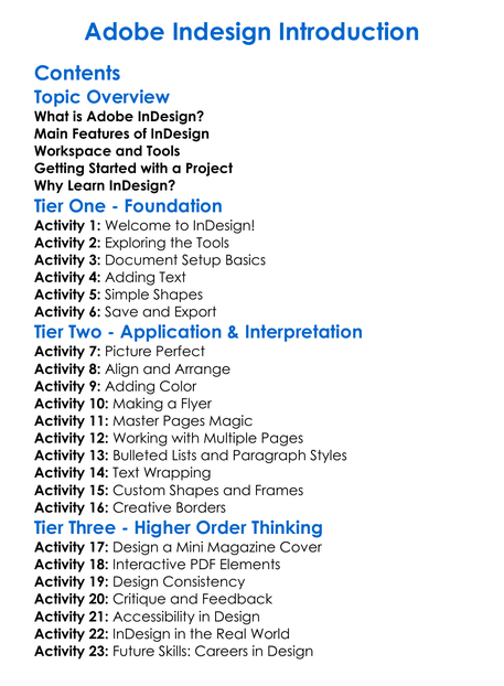 Adobe Indesign Introduction Worksheet Activity Booklet