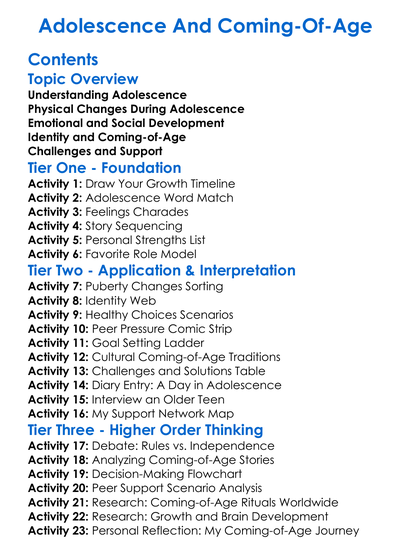Adolescence And Coming-Of-Age Worksheet Activity Booklet