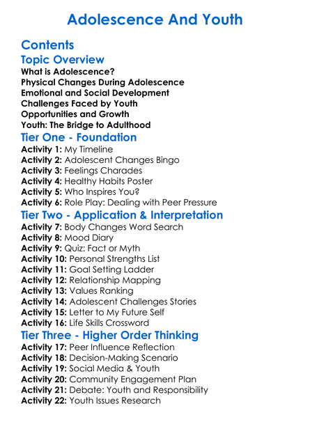Adolescence And Youth Worksheet Activity Booklet