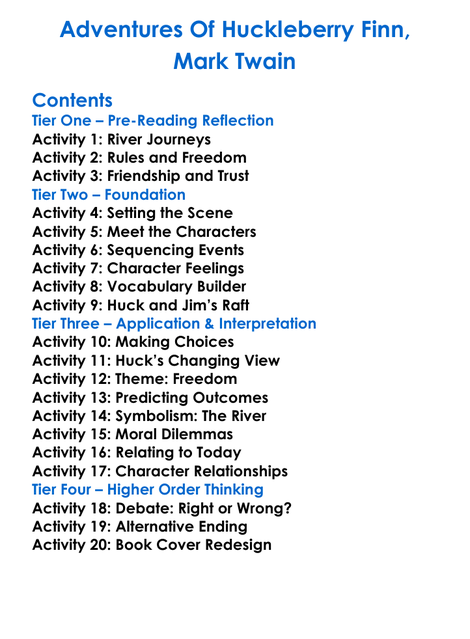 Adventures Of Huckleberry Finn Mark Twain Worksheet Activity Booklet