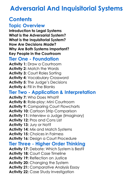 Adversarial And Inquisitorial Systems Worksheet Activity Booklet