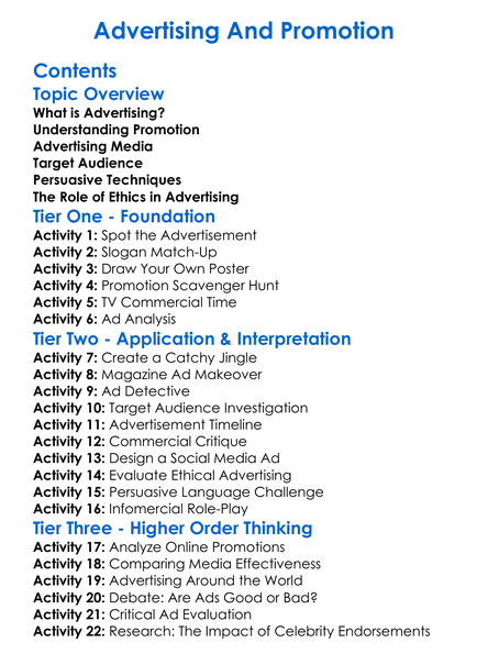 Advertising And Promotion Worksheet Activity Booklet