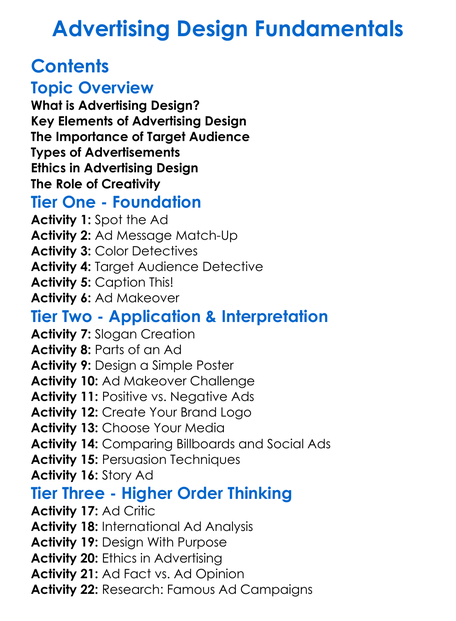 Advertising Design Fundamentals Worksheet Activity Booklet