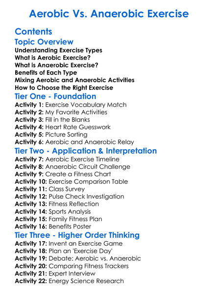 Aerobic Vs Anaerobic Exercise Worksheet Activity Booklet
