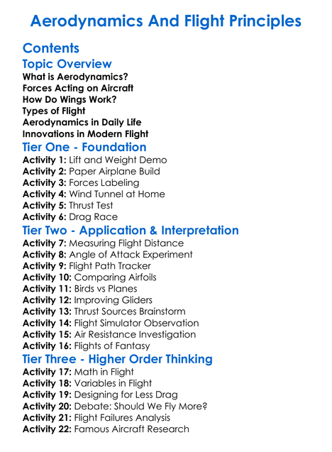 Aerodynamics And Flight Principles Worksheet Activity Booklet