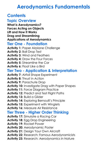Aerodynamics Fundamentals Worksheet Activity Booklet