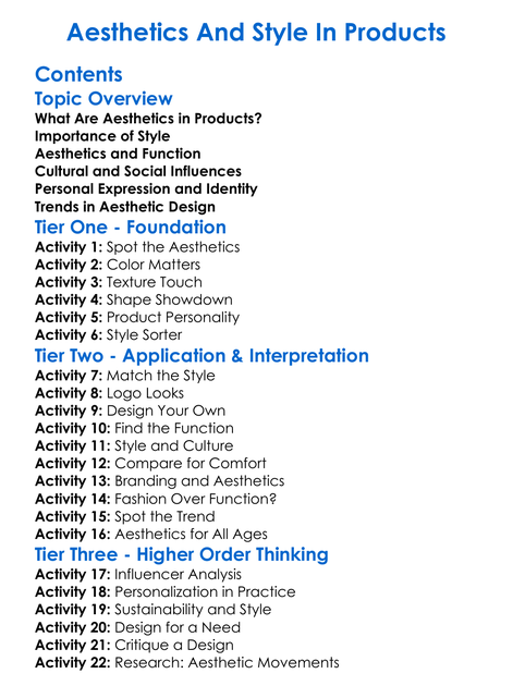 Aesthetics And Style In Products Worksheet Activity Booklet
