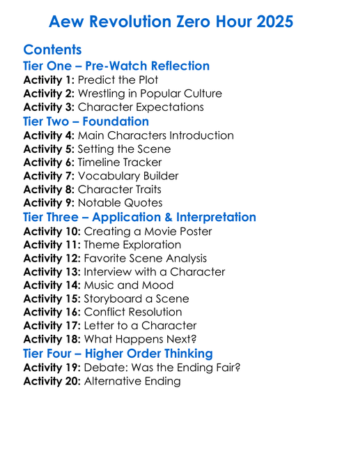 Aew Revolution Zero Hour 2025 Worksheet Activity Booklet