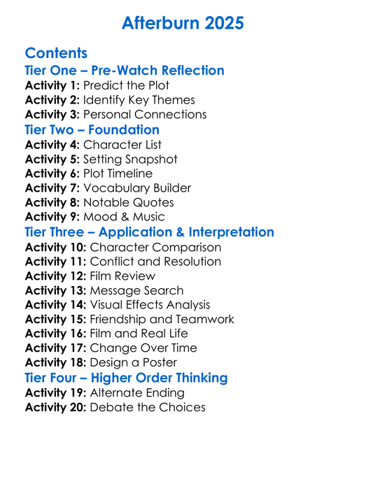 Afterburn 2025 Worksheet Activity Booklet