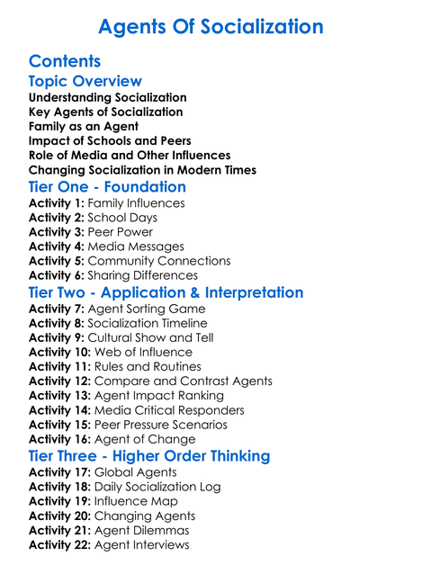Agents Of Socialization Worksheet Activity Booklet