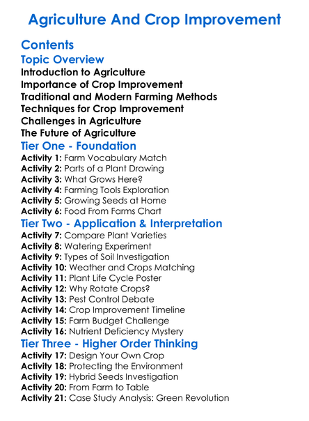 Agriculture And Crop Improvement Worksheet Activity Booklet