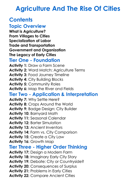 Agriculture And The Rise Of Cities Worksheet Activity Booklet