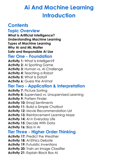 Ai And Machine Learning Introduction Worksheet Activity Booklet