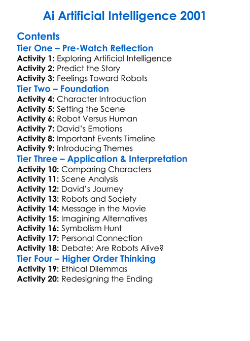 Ai Artificial Intelligence 2001 Worksheet Activity Booklet