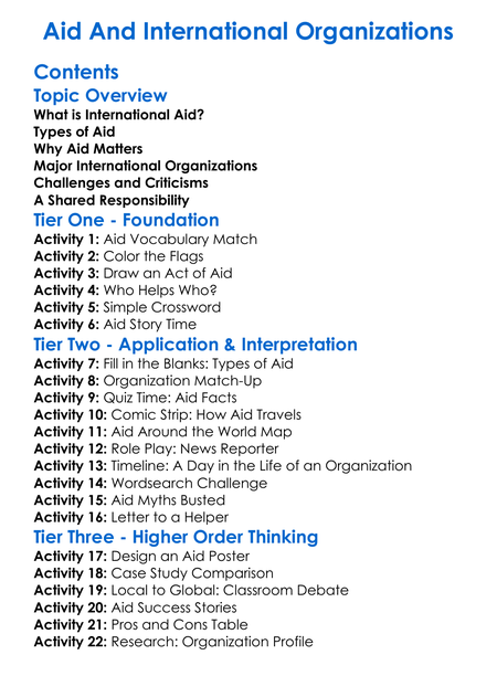 Aid And International Organizations Worksheet Activity Booklet