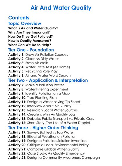 Air And Water Quality Worksheet Activity Booklet