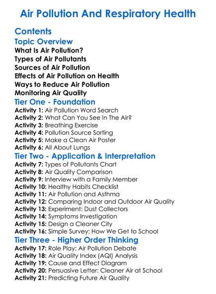 Air Pollution And Respiratory Health Worksheet Activity Booklet