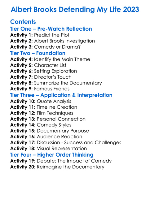 Albert Brooks Defending My Life 2023 Worksheet Activity Booklet