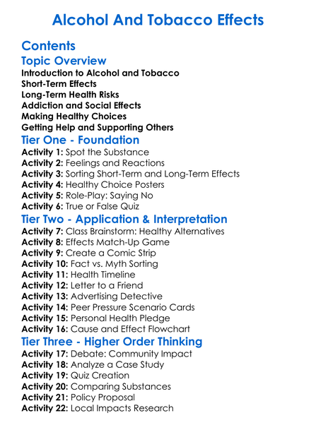 Alcohol And Tobacco Effects Worksheet Activity Booklet