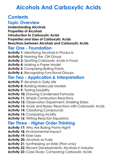 Alcohols And Carboxylic Acids Worksheet Activity Booklet
