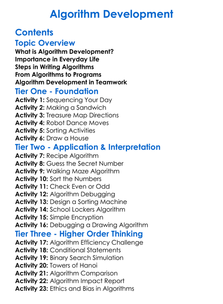 Algorithm Development Worksheet Activity Booklet