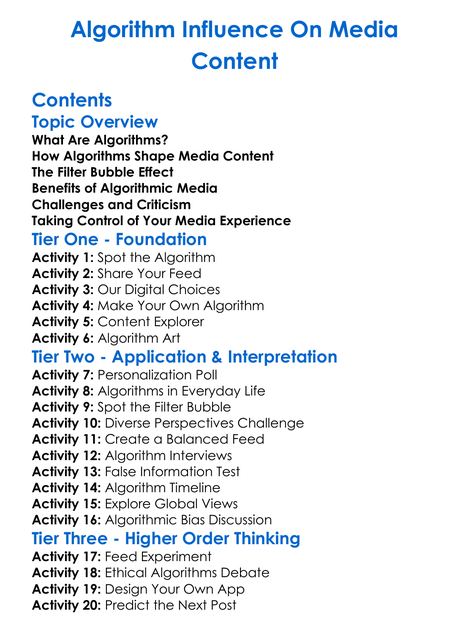 Algorithm Influence On Media Content Worksheet Activity Booklet