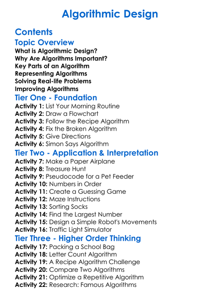 Algorithmic Design Worksheet Activity Booklet