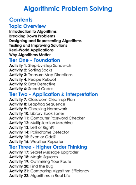 Algorithmic Problem Solving Worksheet Activity Booklet